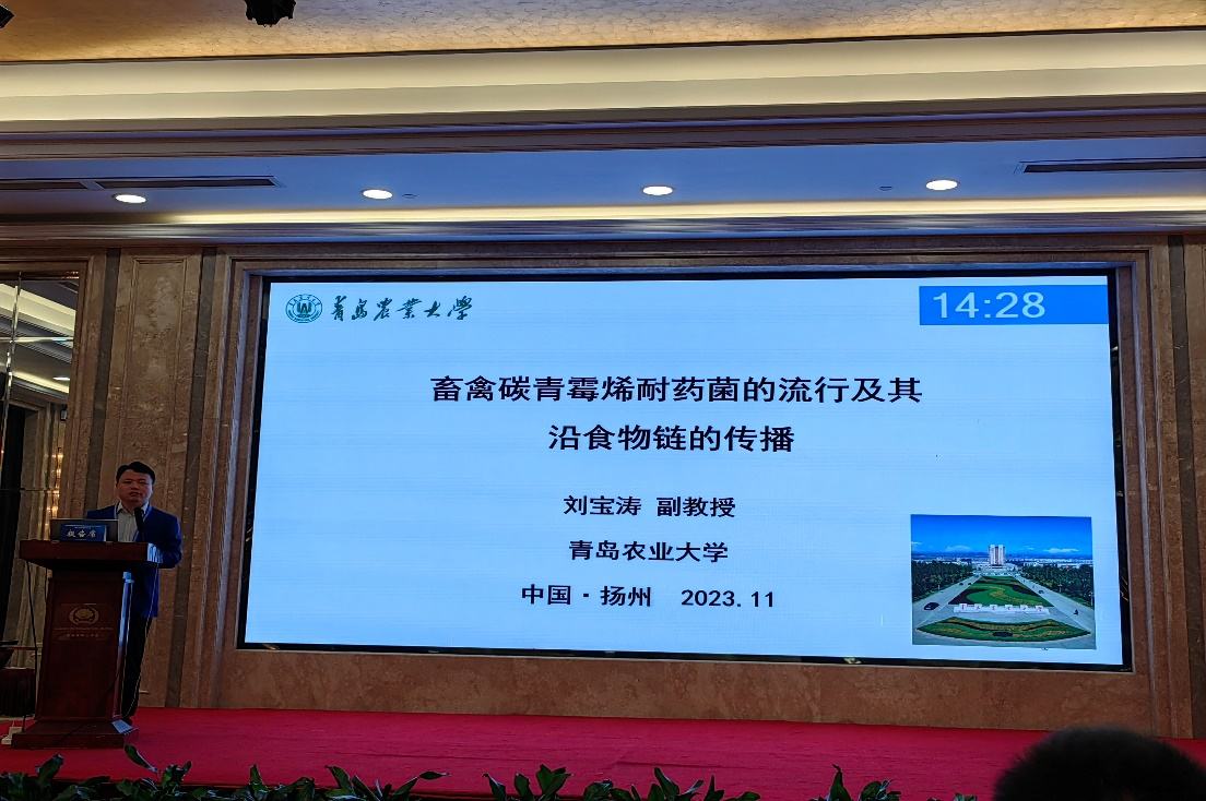 刘宝涛副教授结合近年来的研究进展在分会场作题为《畜禽碳青霉烯耐药菌的流行及其沿食物链的传播》的学术报告,报告以国内外人临床和畜禽碳青霉烯耐药菌的流行现状,结合畜禽食品中碳青霉烯耐药菌的分子特征,开展了食品中耐药菌的溯源及其传播路径分析工作。