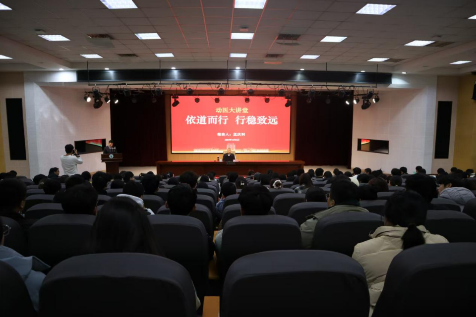 12月3日,我校牧医系84级校友、山东和康源集团董事长、创始人孟庆利应邀在学术会馆第二报告厅作《依道而行,行稳致远》主题报告,欧洲杯买足球软件党委书记丁国庆主持报告会,欧洲杯买足球软件、动物科技学院学子聆听报告会。