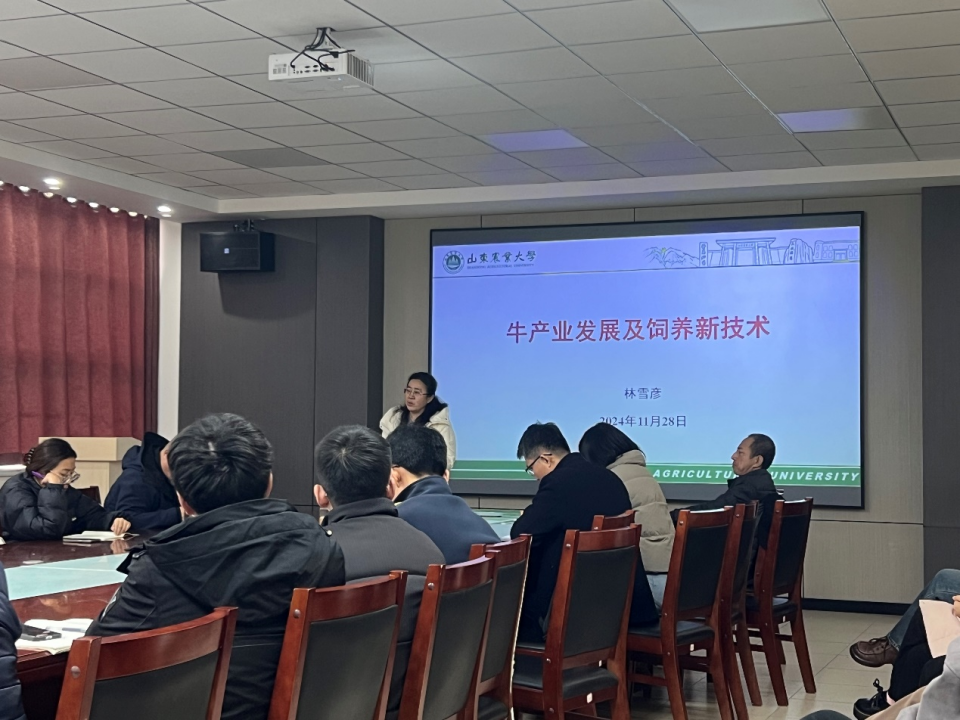 11 月 28 日,山东农业大学林雪彦教授应邀为欧洲杯买足球软件师生作《牛产业发展及饲养新技术》学术报告,学院师生热情参与,现场学术氛围浓厚。