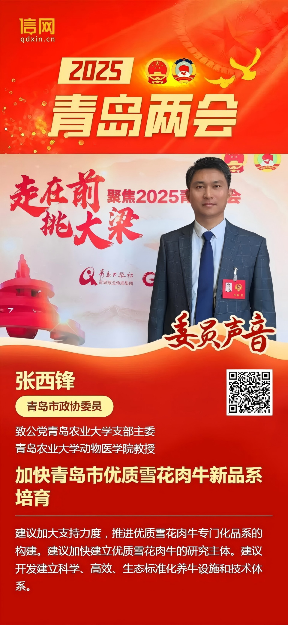 大众报业集团半岛传媒旗下新闻网站信网以《加快青岛市优质雪花肉牛新品系培育》为题报道青岛市政协委员、致公党welcome欧洲杯官网支部主委、欧洲杯买足球软件张西锋教授提案。
