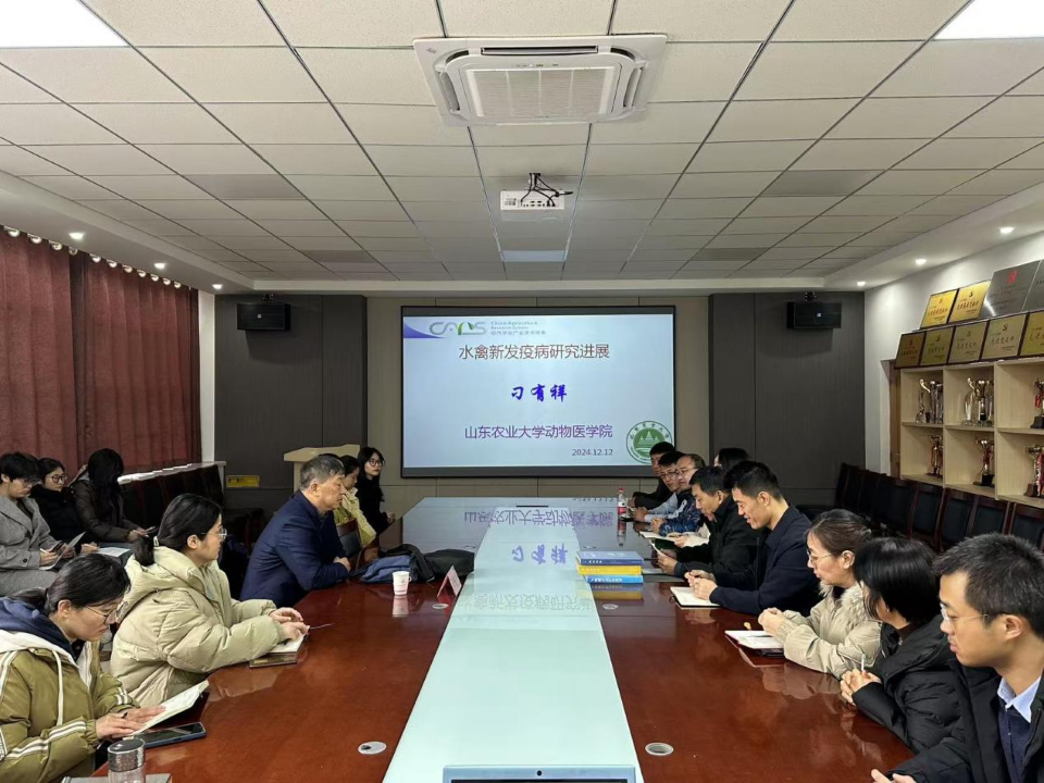 2024年12月12日,欧洲杯买足球软件邀请山东农业大学刁有祥教授来校作报告,报告题目为“水禽新发疫病研究进展”,报告会由韩先杰副院长主持,学院60余名师生参加。