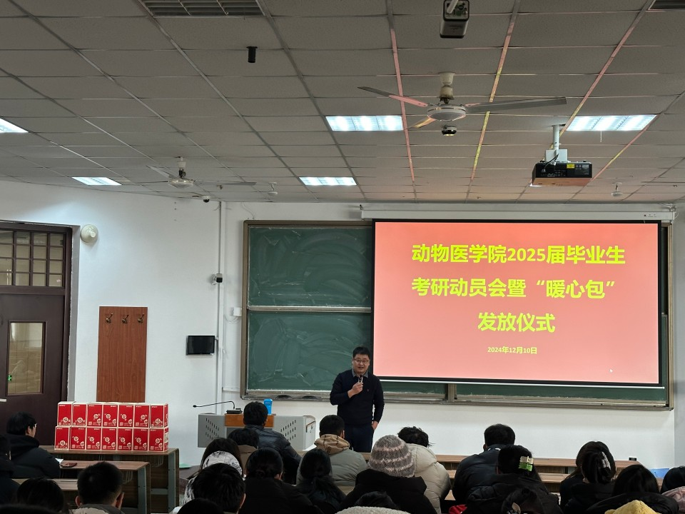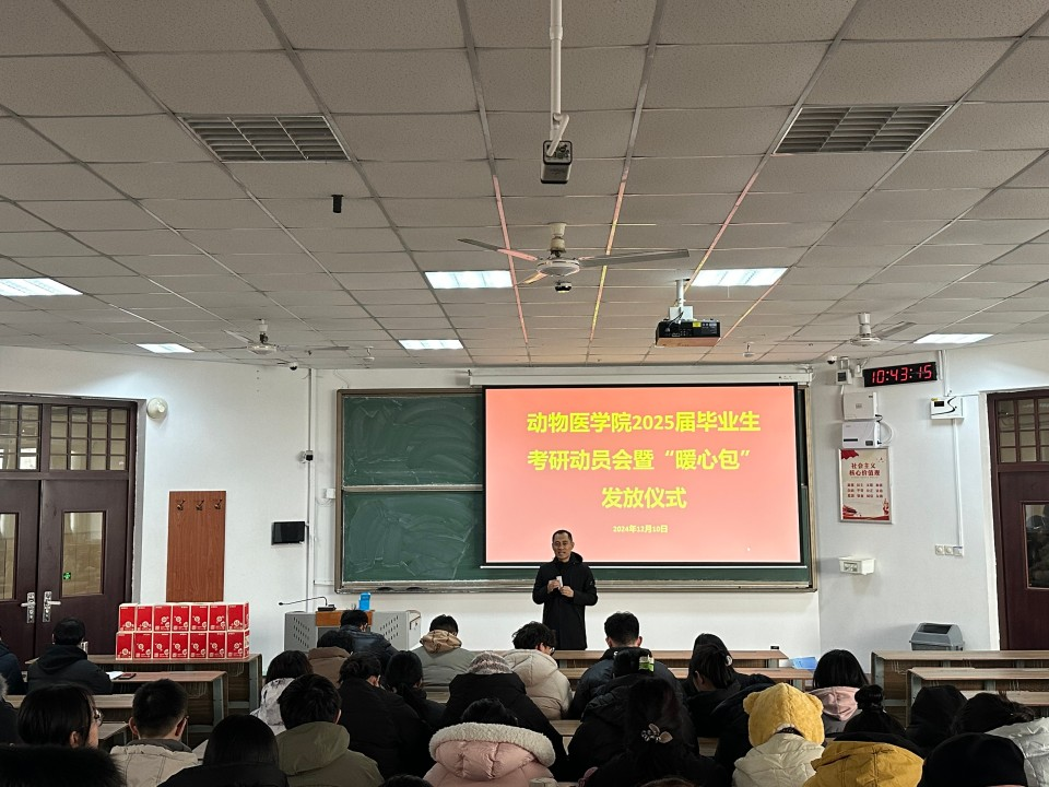 为缓解2025届毕业生考研备考压力,2024 年 12 月 10 日,欧洲杯买足球软件于教学区举行了 2025 届毕业生考研动员会暨“暖心包”发放仪式,为即将踏上考研征程的学子们加油助威、传递温暖。学院团委书记和法华,青年教师刘刚,辅导员厉枝及2020级考研学子代表参加活动。