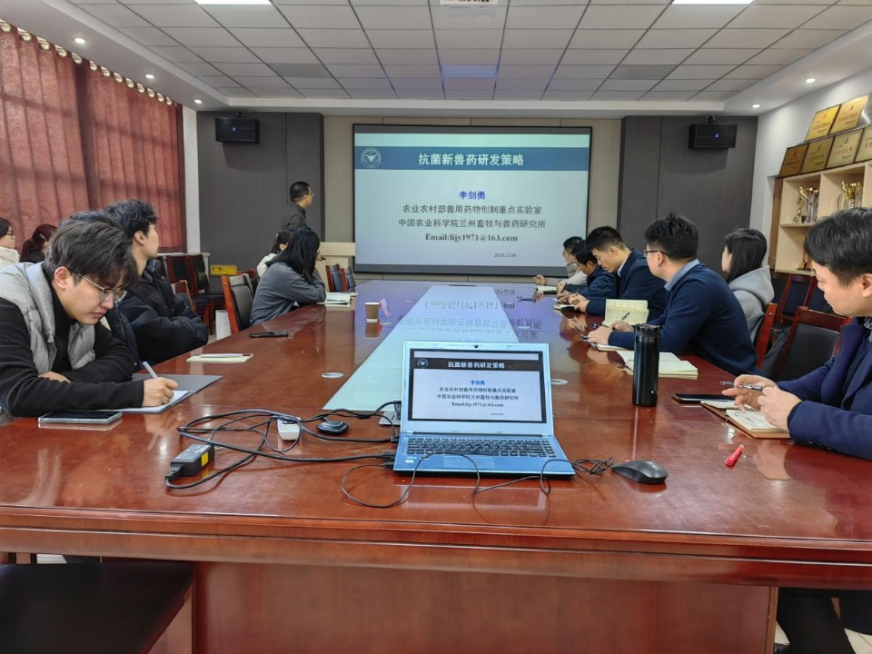 随后,李剑勇研究员详细介绍了抗菌新兽药研发的各个环节,包括药物靶点的选择、先导化合物的筛选、药物设计与合成、药效学评价、药代动力学研究以及临床前安全性评价等。他结合其团队研究成果,深入浅出地讲解了每个环节的关键技术和研究方法,使师生们对抗菌新兽药的研发过程有了更加全面和深入的了解。