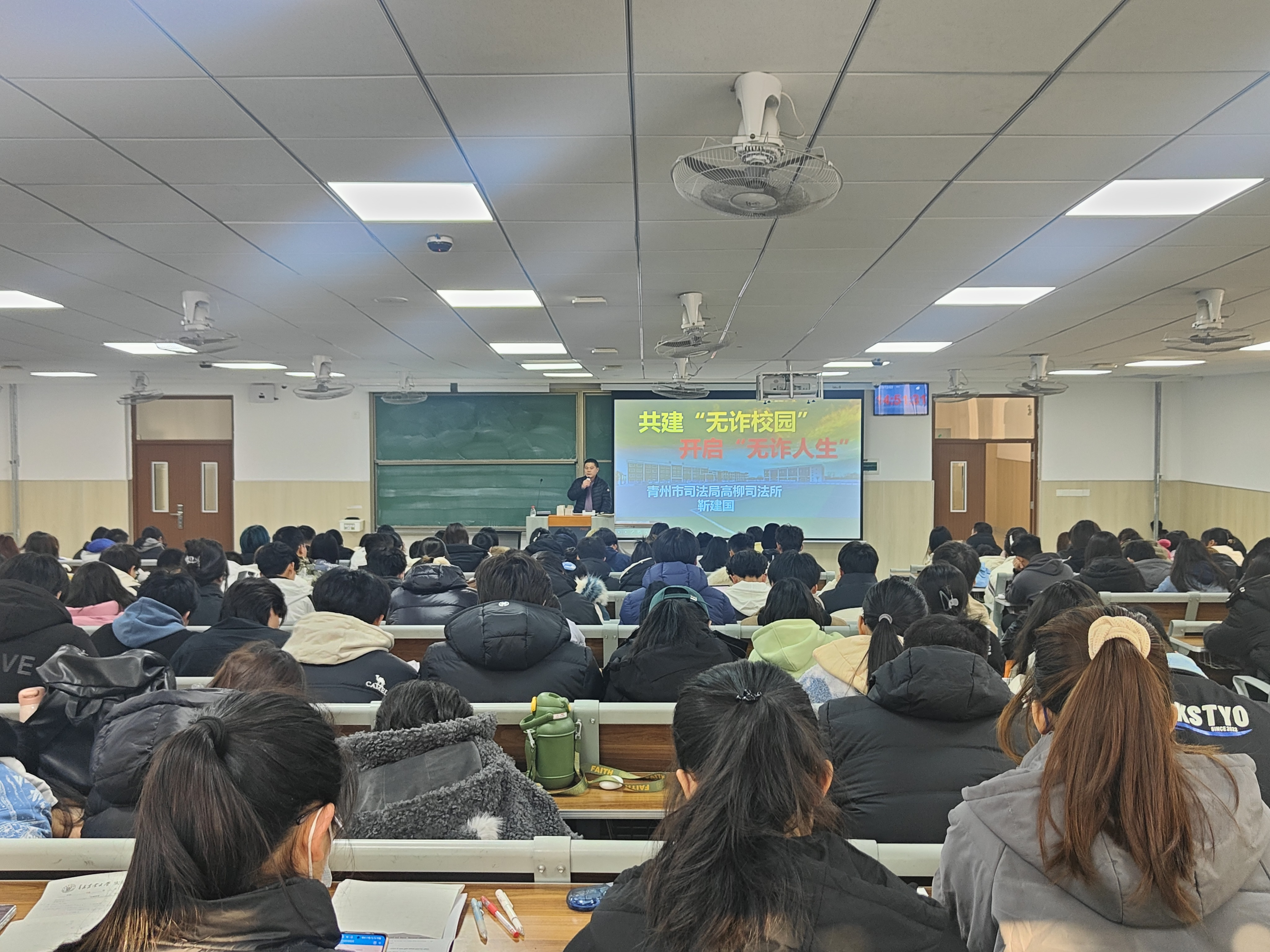 为切实加强反诈防诈宣传教育,提高学生的防范电信网络诈骗意识,强化识骗防骗能力,12月3日,由“青春护航”安全教育工作室和欧洲杯买足球软件学生会主办的“防范电信网络诈骗”专题讲座在平度校区举行,潍坊青州市司法局高柳所靳建国所长应邀担任主讲,平度校区来自20个学院的240余名本科学生参加。讲座由“青春护航”安全教育工作室主持人、欧洲杯买足球软件团委书记和法华主持。