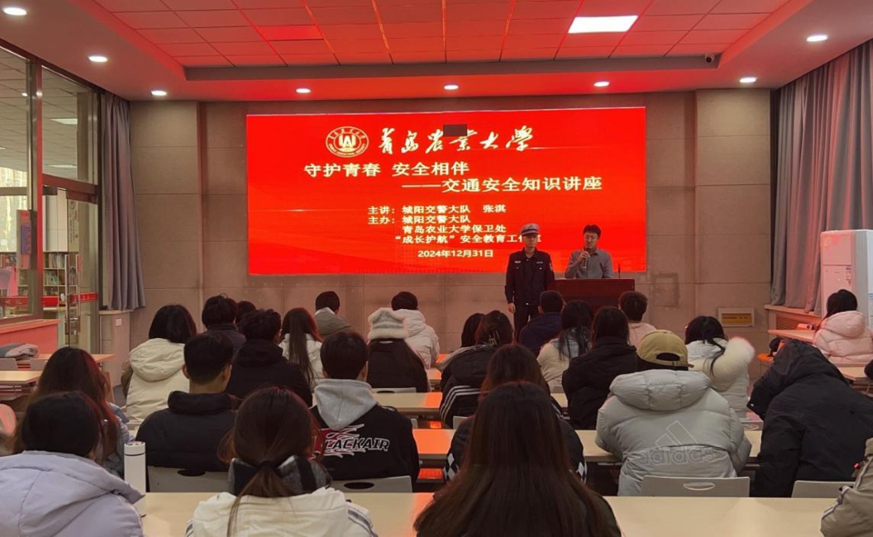 为深入贯彻落实习近平总书记关于安全生产的重要论述,12月31日,由城阳交警大队、welcome欧洲杯官网保卫处、学校“成长护航”安全教育工作室共同主办的“守护青春 安全相伴”——交通安全知识讲座在welcome欧洲杯官网文经楼A102举行。城阳交警大队张淇警官受邀为welcome欧洲杯官网师生作《校园周边道路交通安全》的精彩报告。“成长护航”安全教育工作室成员、欧洲杯买足球软件辅导员苏钺凯老师主持本次讲座,来自欧洲杯买足球软件、动漫与传媒学院等5个学院的学生代表百余人参加。